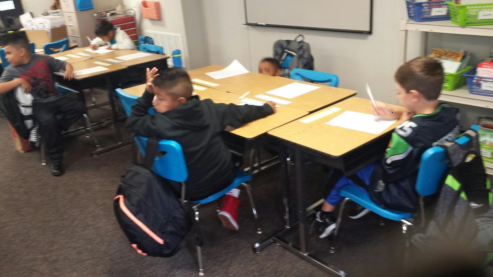 Excited boy today! He's sporting his seahawk jersey under the north lake hoodie. He's got a few familiar faces in class and is stating off with a word search of the kids' names. Z and I are sitting in the heavily congested parking lot. Holy cow....good thing we have no plans for a couple hours!!!